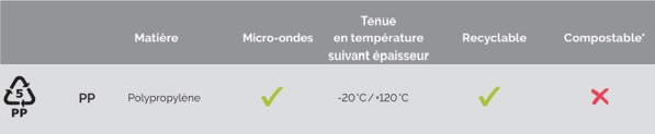Fabriqués en polypropylène (PP), un matériau reconnu pour sa haute résistance thermique, ils supportent le micro-ondes sans se déformer ni altérer les aliments.